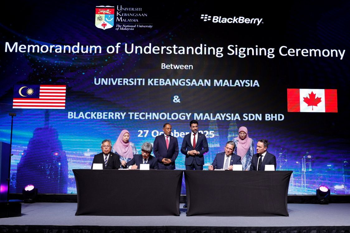 吉隆坡,2025年10月27日——马来西亚国立大学(UKM)与黑莓科技马来西亚私人有限公司签署谅解备忘录(MoU),旨在加强网络安全及嵌入式系统领域的人才培养与科研合作。 通过此次合作,UKM的学生和教职员工将受益于网络安全领域的培训、认证、研究以及技术转移,同时参与嵌入式系统的应用开发。UKM的科研人员和学生还将有机会接入黑莓推出的全球性QNX®️ Everywhere计划,从而打造适用于医疗、汽车等多领域需求的嵌入式系统应用。 UKM信息技术中心主任莫哈末·哈尼夫·穆德·萨阿德副教授表示:“例如,QNX实时操作系统已广泛应用于全球超过2.55亿辆汽车中。这为我们的学生提供了开发安全且行业认可的创新解决方案的宝贵机会。” 他进一步指出:“这份备忘录并非单向合作。UKM将受益于黑莓的专业知识与前沿技术,而黑莓也将从大学获取宝贵的学术见解和科研创意。” 据悉,此次合作为期三年,黑莓每年将提供12,500美元的资金支持,用于联合开展相关研究项目。此外,UKM还与黑莓及国家网络安全局(Nacsa)携手,共同推出一系列针对经济条件较弱势群体的青年人才的网络安全培训计划,以及数字伦理课程。 签约仪式由UKM校长苏菲安·朱索教授、黑莓首席执行官约翰·J·贾马特奥、UKM数字事务总监罗斯利·拉吉坎教授,以及黑莓亚太区销售高级副总裁塔什·斯塔马泰洛斯共同见证。 活动还得到了高等教育部长拿督斯里迪拉贾博士赞布里·阿卜杜勒卡迪尔,以及加拿大贸易部长曼尼德尔·西杜的莅临支持。